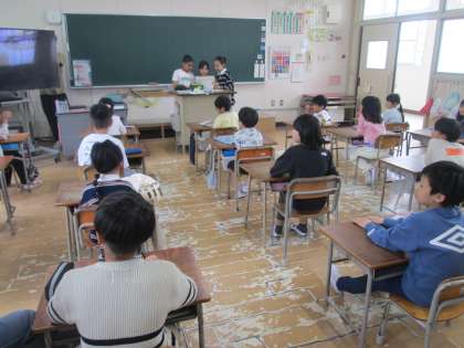 2時間目に、今年度はじめての「なかよし班」活動を行いました。なかよし班は1年生から6年生の児童を2名ずつ入れて編成する班で、異学年と交流する経験を積むことをねらいとしています。