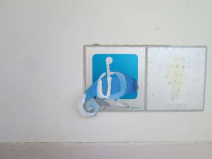(中)身障者用トイレの案内マークが、ちょっと変ですね。