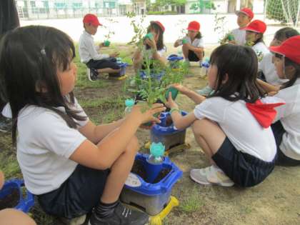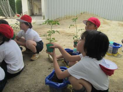2年生は生活科の学習で、1学期にミニトマトを育てていきます。