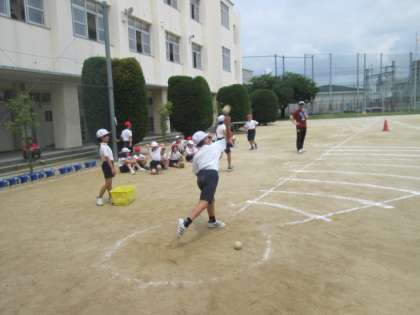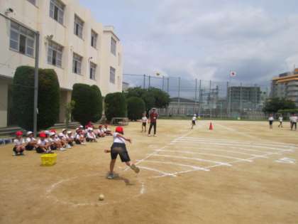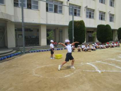 3時間目の中学年は、3年生からスタートしました。1年間で身体が大きくなり力もしっかりとついています。昨年の自分の記録を越えて、自己ベストを更新する児童が続出しました。