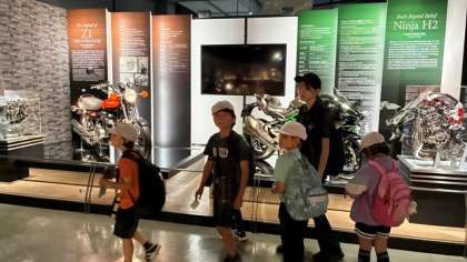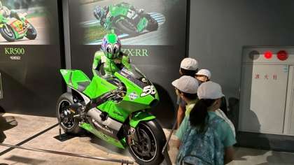 カワサキ製オートバイが年代ごとにたくさん展示されています。