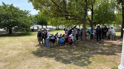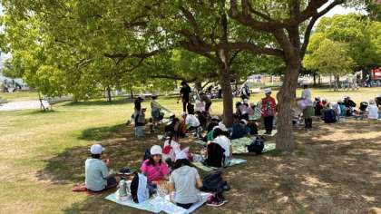 これから、お楽しみのランチタイム。木陰は海風が心地よく涼しいぐらいです。