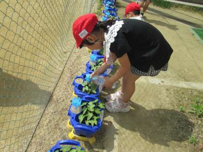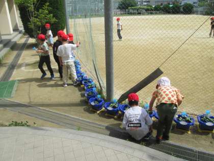 気温も少しずつ上がってくる頃なので、毎日、1時間目の終わりの休み時間にたっぷりと水をかけてあげています。