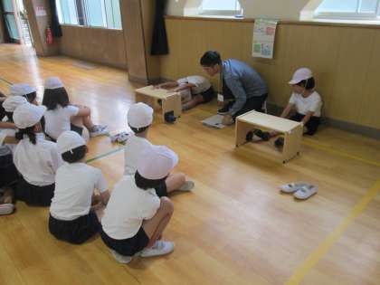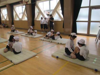 起立の姿勢から腕を振って前方に跳ぶ「立ち幅跳び」、30秒間に上体を起こした回数を数える「上体起こし」、長座の姿勢から前に何cm倒せるかを計測する「長座体前屈」。