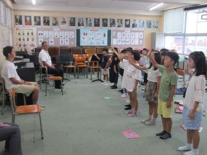 校長先生からは、「いつも2年生の授業を見に行くと、いいクラスだなと感じていました。一人一人が違う個性をもっているのに、それが溶け合ってハーモニーになっている。今日の合奏と合唱には、そんなクラスのまとまりが表れていました。」
