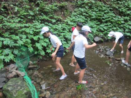 水の冷たさにも慣れ、いよいよ魚を捕まえます。