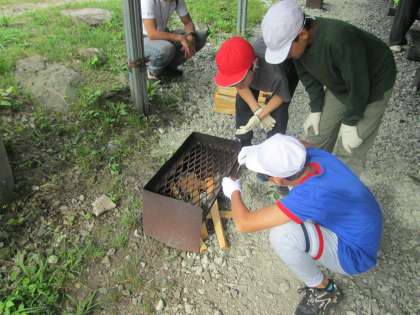 林間学習17 火おこしうまくできるかな?