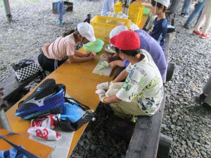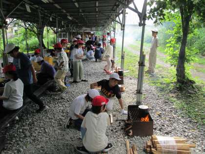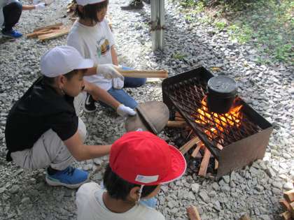 かまどの周りでは、煙とともに歓声も上がりはじめました。