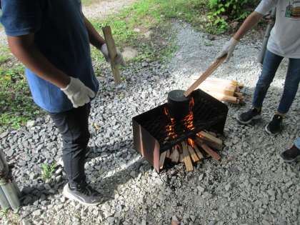 お米の炊ける蒸気のかおりと、ふたを押さえる木から伝わってくる振動がふだん体験できない新鮮な体験として伝わってきます。