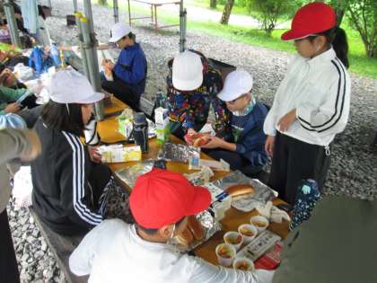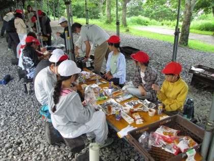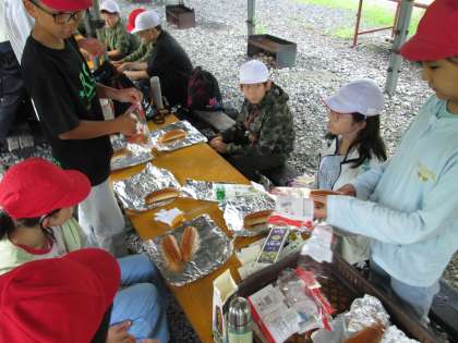 コッペパンにソーセージなどの具材をはさみ、アルミホイルでくるみます。