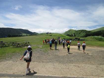 最後の思い出に集合写真を撮り、宿舎の方と名残を惜しみながら、ハチ高原を後にしました。お世話になりました!