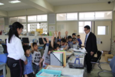 そこで、この日はみんなの気になる校長室と職員室に行ってみることにしました。校長室では校長先生が、職員室では教頭先生がお仕事をされていましたが、やさしく迎えてくださりご機嫌の1年生たちでした。