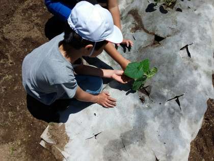 子どもたちは収穫を楽しみにしながら植えていました。