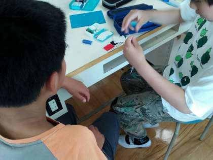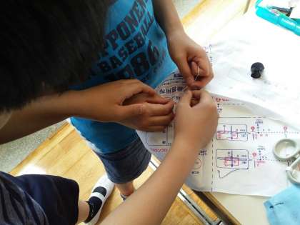家庭科の裁縫で、5年生は6年生に「玉結び」と「玉止め」を教えてもらいました。遠足でのオリエンテーリングの班活動で行い、今回もどの班も楽しく活動ができていました。