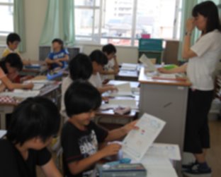 (写真下)5年「形も大きさも同じ図形を調べよう」(習熟度教室)