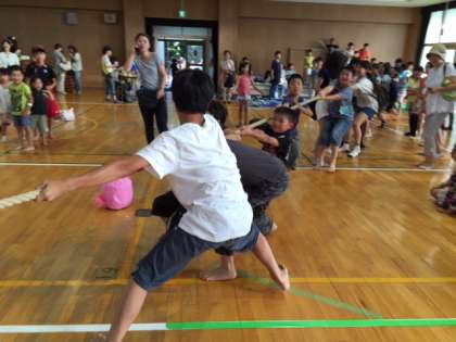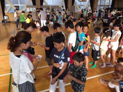 (中)きちんと並んで参加賞をいただく子どもたち!!