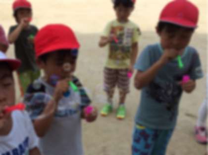生活科の時間にみんなでシャボン玉あそびをしました。