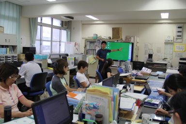 先日、教職員のICT研修でタブレットパソコンの操作方法について学びました。2学期からインターネットにつながる環境が整備され、いよいよ本格的に活用できる段階になりました。