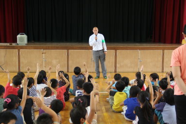 その後、淀川警察、セーフティー淀川の方々に「怖い目にあったら大きな声を出して逃げる」「110番通報する(してもらう)」ということを教えていただきました。