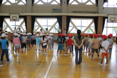 運動会に向けて、体育朝会で「運動会の歌」の練習をしました。赤組、白組が自分たちのチームの優勝を目指して元気いっぱい歌いました。どちらの組も気合いが入っていましたよ!