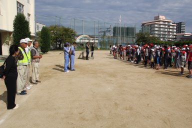 12日(火)、交通安全指導を行いました。地域、保護者、セーフティー淀川のみなさんにご参加いただき、子ども達が安全な歩行ができるように練習しました。