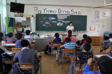 1年、5年の栄養指導がありました。栄養士の指導のもと1年生は、「好き嫌いなく食べよう」というテーマで学習しました。「体をつくる」「熱や力のもとになる」「体の調子を整える」それぞれの食べ物について考えました。5年生は、「魚について知ろう」というテーマで、魚の種類や魚の体のつくりについて学びました。