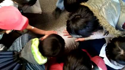 給食を食べる前の出発ということで、教室でお弁当をたべました。子ども達はいつもと違う雰囲気とおいしいお弁当にとても喜んでいました。