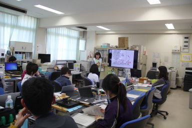 また、そのあと引き続き、ICTについての研修を行いました。職員室のパソコンで作成したデータを、教室にある授業用パソコンに転送する方法を学びました。