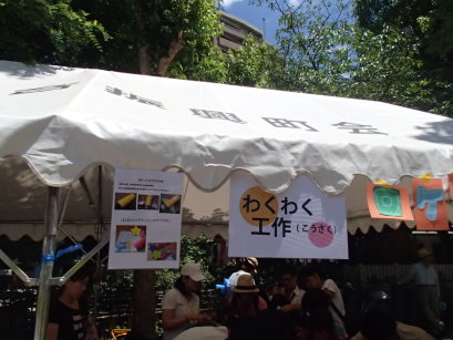 飲み物や食べ物の販売のほか、手作りろうそくや工作、ゲームなどたくさんのお店が立ち並び、十三の子ども達や近隣の方が参加していました。