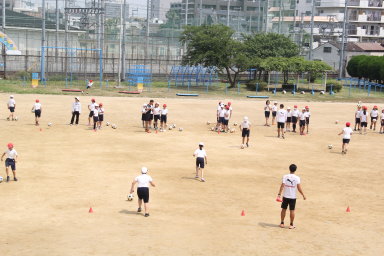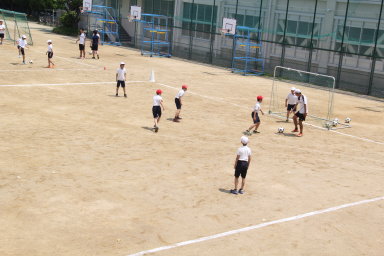 先日5,6年生の子ども達を対象に、トップアスリート授業として、セレッソ大阪のコーチの方4名に来ていただきました!ボールを持って鬼ごっこをしたり、リレーをしたり、ミニゲームをしたり、リズミカルな授業展開に、子どもたちは必死でついていくうちに、いつの間にかサッカーボールを蹴ることが楽しくなっていました。