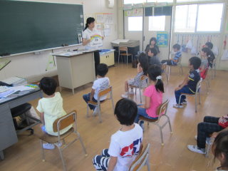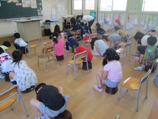ポイントは座るときに「お腹の下に力を入れる」ことで、簡単な体操を通して良い姿勢について学習しました。どんな学習をしたか、またご家庭でも聞いてあげてください。