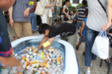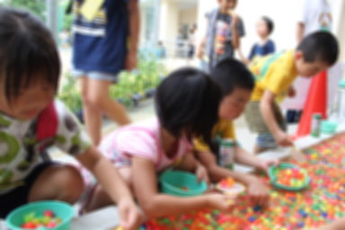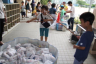 <写真上> 不思議と破れにくいスーパーボールすくい