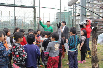 そこで、本栽培活動に、関西情報ネットtenからタレントのメッセンジャー・あいはらさんがお越しになり、子どもたちと一緒に栽培活動を行ったり、活動の様子を紹介したりしてくださいました。