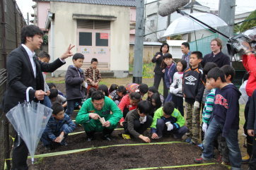 今回、西辻さんのご指導・ご助言をいただき、学校の北側にある「学習園」を耕し、子どもたちが1年を通して野菜を育てられるよう計画を開始しました。