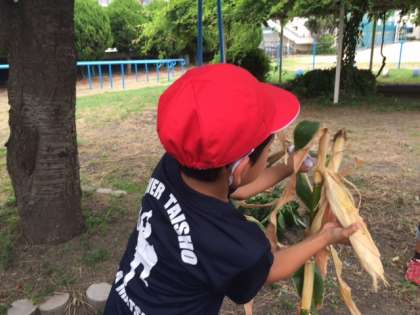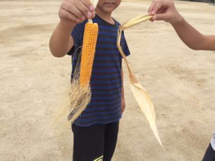 たくさん実をつけ、おいしくいただきました。トウモロコシは、ポップコーン用として、収穫しました。