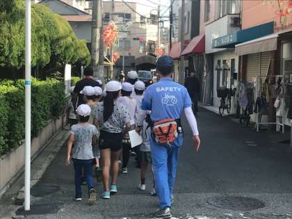 セーフティ淀川の方からのお話や事前の諸注意を受けた後、午前10:00に交通安全指導として校区へ歩行訓練に出発しました。なかよし班で行ってらっしゃーい!