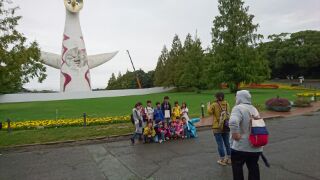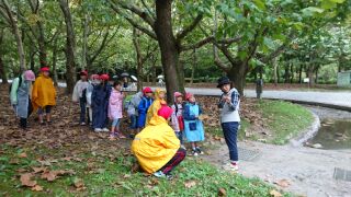 お弁当を食べて昼からのオリエンテーリング頑張っています。まだ雨ですが…