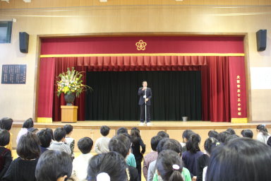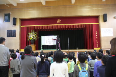 新しい年になり、3学期を迎えました。寒い朝でしたが、子ども達は元気に登校していました。始業式では、学校長から新しい年になり、「自分のよりところを見つけてのばしてほしい」という話などをしました。3学期のめあてとして、子ども達は、
