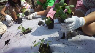 その後、「十三ふれあい農園」へ行き、苗を植えました。