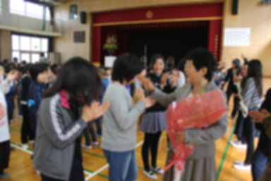 最後に、現段階で本校を離任することが決まっている教職員の離任式を行いました。みんな、さみしい気持ちでしたが、明るく花道を作って送り出していました。