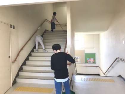 ぞうきんを洗いに手洗い場に行くと、4年生の人たちが2号階段をきれいに掃いていました。みんなががんばって掃除をしているので、十三小学校は今日もぴかぴかです。