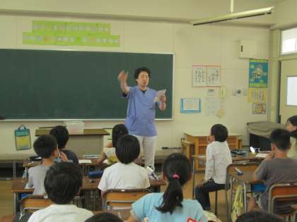 5時間目、総合の時間を利用して全国小学生歯みがき大会に参加しました。歯科の校医先生もお越しいただき、DVDと一緒に正しい歯ブラシの使い方や、デンタルフロスの使い方も練習しました。何よりも小学生でも3人に1人は歯周病にかかっていると聞いて驚きました。