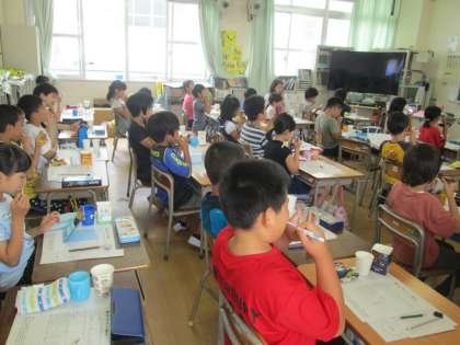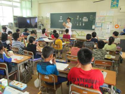 4年生はやはり歯科衛生士さんに歯垢がたまりやすい場所と、きれいに磨ける歯みがきの方法を教えていただきました。歯ブラシを鉛筆のように持って1本ずつゆっくり磨くのがコツです。歯の表面がつるつるになって、みんな喜んでいました。