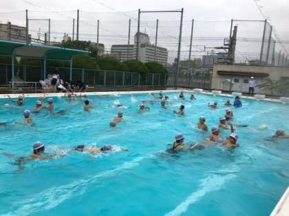 待ちに待ったプール開きです。少し小雨がパラついていましたが、2時間目は5・6年生が、そして5時間目は3・4年生が、元気いっぱいプール開きを楽しみました。明日は1・2年生もプールに入る予定です。お天気になればいいですね。