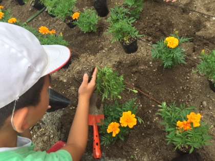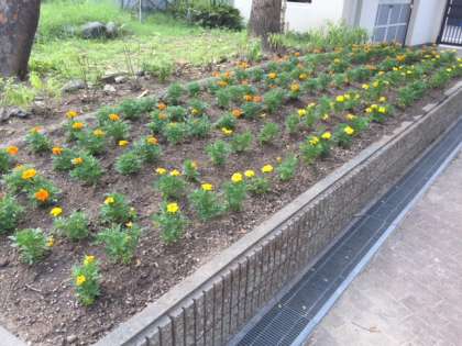 4月末に種をまいたマリーゴールド。いよいよ花壇へ植え替えです。