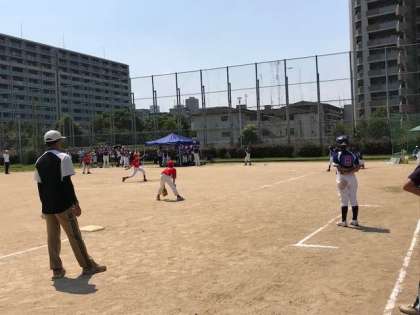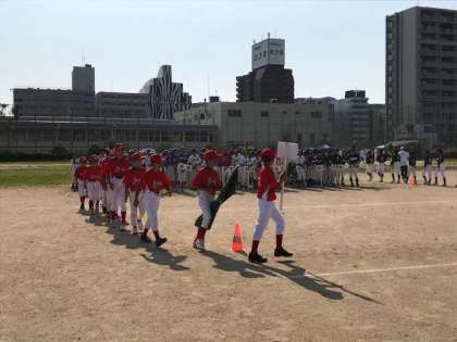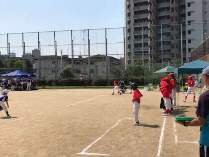 猛暑の中、ソフトボール大会が行われました。十三小学校チームも、燃える赤のユニフォームに身を包み、チームワークよくがんばりました。残念ながら、西中島小チームの方が1枚上手でした。次は秋の新人戦です。このくやしい思いを忘れずに、練習に励んでください。