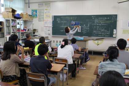 今日は十三小学校図書ボランティアグループ「よもよも」さんによる、月に2回の読み聞かせの日です。教職員が朝の打ち合わせをしている10分ほどの時間に、各教室で様々な本を読んでくださっています。子どもたちも楽しみにしていて、熱心に聴いています。教室の写真は、1年生、4年生、6年生です。