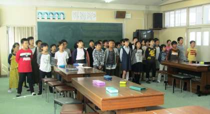 来る11月14日午後1時30分より、文化庁の事業で「東京オペレッタ劇場」の方々が、「小鳥売り」というオペレッタ(いわゆるオペラの中の軽めの喜劇ジャンル)を本校の講堂で上演してくださいます。その中で歌われる『チロルの山では』という曲を4年生が、全校児童の練習用のCD録音に協力してくれました。実はすでに4年生は1年生に出前授業を行って、歌を教えてくれたのです。今日は授業が始まる前から音楽室に集まって、自主練をしました。座って歌っている写真はそのようすです。そして、授業が始まって少し練習した後、録音しました。最初はすごく緊張していた4年生ですが、楽しんで歌ってくれました。ありがとう。きれいな声が出ていましたよ。