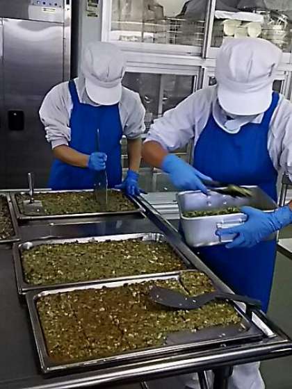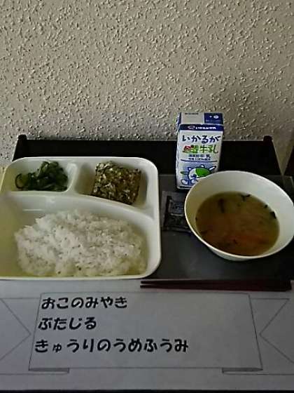今日は大阪名物「お好み焼き」が給食に登場しました。やまいもとろろも入った本格的なお好み焼きです。ホテルパンでこんがり焼けたお好み焼きを給食調理員さんがきれいに切り分けてくれました。子どもたちにも大人気でした。