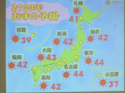 2時間目は、5・6年生が NPO法人気象キャスターネットワークさんの出前授業で地球温暖化について学びました。2100年(その頃6年生のみなさんは94歳!)の天気予報の夏の最高気温予想はショッキングでした。そのあと、私たちはどんなエネルギーをいつ、どれくらい使っているのか隣同士話し合い、発表としてブロックを積みました。